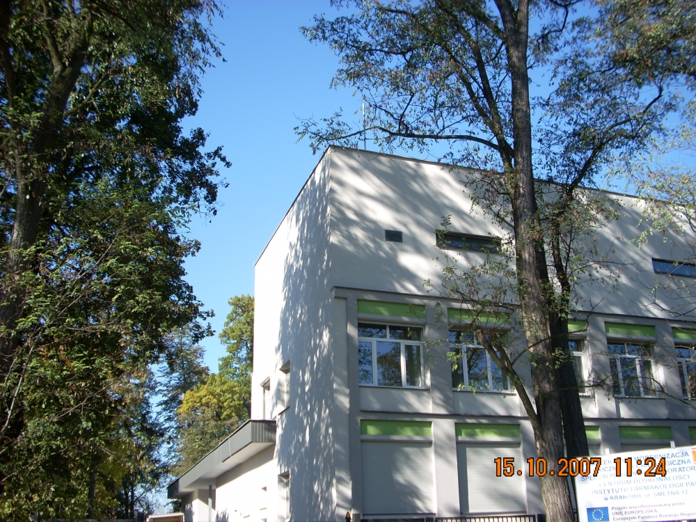 Budynek Farmakologii przy ulicy Smentnej w Krakowie. Modernizacja Techniczno-Technologiczna Specjalistycznego Laboratorium Centrum Doskonałości w Instytucie Polskiej Akademii Nauk.